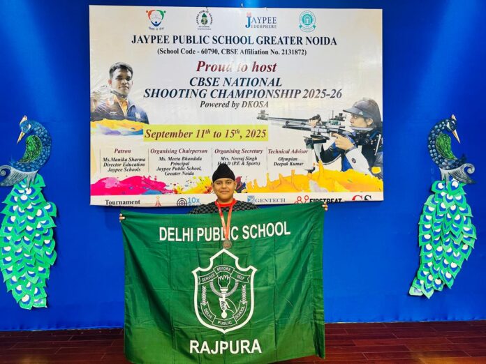 ਤਾਰੀਖ 17 ਸਤੰਬਰ ਨੂੰ ਸੀ.ਬੀ.ਐਸ.ਈ. ਵੱਲੋਂ ਰਾਸ਼ਟਰੀ ਸਮੂਹਿਕ ਸ਼ੂਟਿੰਗ ਚੈਂਪਿਅਨਸ਼ਿਪ ਦਾ ਆਯੋਜਨ ਕੀਤਾ ਗਿਆ, ਜਿਸ ਵਿੱਚ ਅੱਠਵੀਂ ਜਮਾਤ ਦੇ ਵਿਦਿਆਰਥੀ ਹਰਜੋਤ ਸਿੰਘ ਨੇ ਕਾਂਸੇ ਦਾ ਤਮਗਾ ਜਿੱਤ ਕੇ ਸਕੂਲ ਦਾ ਨਾਮ ਰੌਸ਼ਨ ਕੀਤਾ। ਹਰਜੋਤ ਲਈ ਇਹ ਤਮਗਾ ਉਸਦੀ ਮਿਹਨਤ, ਆਤਮ-ਵਿਸ਼ਵਾਸ ਅਤੇ ਏਕਾਗ੍ਰਤਾ ਦਾ ਪ੍ਰਮਾਣ ਹੈ। ਸਕੂਲ ਦੀ ਪ੍ਰਿੰਸੀਪਲ ਸ਼੍ਰੀਮਤੀ ਗੀਤਿਕਾ ਚੰਦਰਾ ਜੀ ਨੇ ਹਰਜੋਤ ਦੀ ਇਸ ਸਫਲਤਾ ‘ਤੇ ਉਸਨੂੰ ਵਧਾਈ ਦਿੱਤੀ ਅਤੇ ਭਵਿੱਖ ਵਿੱਚ ਵੀ ਇਸੇ ਤਰ੍ਹਾਂ ਪ੍ਰਤੀਯੋਗਿਤਾਵਾਂ ਵਿੱਚ ਅੱਗੇ ਰਹਿਣ ਦੀ ਪ੍ਰੇਰਣਾ ਦਿੱਤੀ। ਉਨ੍ਹਾਂ ਕਿਹਾ ਕਿ ਹਰਜੋਤ ਦੀ ਸਫਲਤਾ ਹੋਰ ਵਿਦਿਆਰਥੀਆਂ ਲਈ ਪਥ-ਪ੍ਰਦਰਸ਼ਕ ਬਣੇਗੀ। ਡੀ.ਪੀ.ਐਸ. ਰਾਜਪੁਰਾ ਨਾ ਸਿਰਫ਼ ਸਿੱਖਿਆ ਦੇ ਖੇਤਰ ਵਿੱਚ, ਬਲਕਿ ਖੇਡਾਂ ਨਾਲ ਸੰਬੰਧਿਤ ਸਭ ਕਿਰਿਆਵਾਂ ਵਿੱਚ ਵੀ ਬੱਚਿਆਂ ਨੂੰ ਨਵੇਂ -ਨਵੇਂ ਅਨੁਭਵ ਦਿਵਾਉਣ ਲਈ ਹਮੇਸ਼ਾਂ ਅੱਗੇ ਰਹਿੰਦਾ ਹੈ।